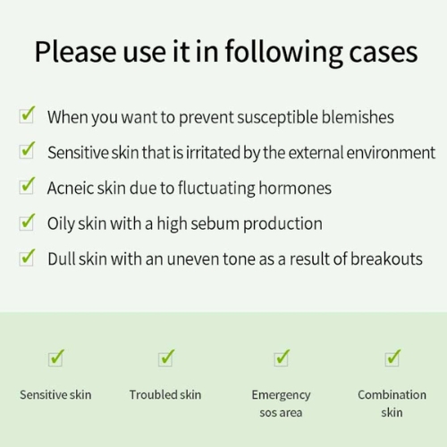 • Neem een ​​kleine hoeveelheid en dep het zachtjes op puistjes of geïrriteerde ple