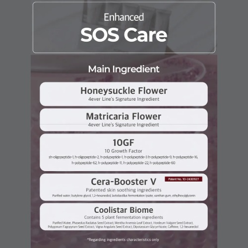 Water, Caprylic/Capric Triglyceride, Ethylhexyl palmitate, Helianthus Annuus (Sunflower) Seed Oil, Glycerin, Cyclopentasiloxane, Cyclohexasiloxane, Dipropylene Glycol, Niacinamide, Polyglyceryl-2 Dipolyhydroxystearate, Cetyl PEG/PPG-10/1 Dimethicone, Dimethicone, 1,2-Hexanediol, Sorbitan Sesquioleate, Silica, Hydrogenated Polydecene, Sodium Chloride, Trihydroxystearin, Phaseolus Radiatus Seed Extract, Mentha Arvensis Leaf Extract, Chamomilla Recutita (Matricaria) Flower Extract, Hordeum Vulgare Extract, Polygonum Fagopyrum (Buckwheat) Seed Extract, Phaseolus Angularis Seed Extract, Caprylyl Glycol, Butylene Glycol, Centella Asiatica Extract, Lavandula Angustifolia (Lavender) Oil, Xanthan Gum, Adenosine, Disodium EDTA, Illicium Verum (Anise) Fruit Extract, Polygonum Cuspidatum Root Extract, Scutellaria Baicalensis Root Extract, Camellia Sinensis Leaf Extract, Glycyrrhiza Glabra (Licorice) Root Extract, Rosmarinus Officinalis (Rosemary) Leaf Extract, Cyclomethicone, Lactobacillus Ferment Lysate, Lonicera Japonica (Honeysuckle) Flower Extract, Dipotassium Glycyrrhizate, Caffeine, Ethylhexylglycerin, Linalool, sh-Oligopeptide-1, sh-Oligopeptide-2, sh-Polypeptide-1, sh-Polypeptide-3, sh-Polypeptide-9, sh-Polypeptide-16, sh-Polypeptide-62, sh-Polypeptide-11, sh-Polypeptide-22, sh-Polypeptide-60