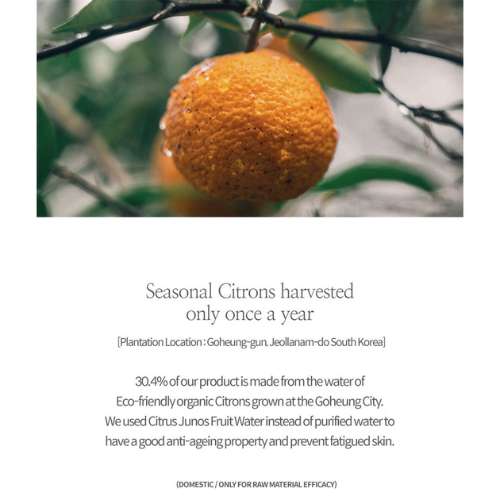 Citrus Junos Fruit Water (65%), Calophyllum Inophyllum (Alexandrian Laurel) Seed Oil (5%), Macadamia Ternifolia (Macadamia) Seed Oil (5%), Isoamyl Laurate, Water, Glycerin, Cetearyl Alcohol, Butyrospermum Parkii (Shea) Butter (2%), Stearic Acid, Glyceryl Stearate SE, Cetearyl Glucoside, Akebia Quinata Extract, Sodium Hyaluronate, Centella Asiatica (Gotu Kola) Extract, Polygonum Cuspidatum (Japanese Knotweed) Root Extract, Camellia Sinensis (Green Tea) Leaf Extract, Chamomilla Recutita (Matricaria) Flower Extract, Rosmarinus Officinalis (Rosemary) Leaf Extract, Hydrogenated Olive Oil, Olea Europaea (Olive) Fruit Oil, Olea Europaea (Olive) Oil Unsaponifiables, Cetearyl Olivate, Sorbitan Olivate, Hydrogenated Vegetable Oil, Allantoin, Tocopherol, Beta-Glucan, Scutellaria Baicalensis (Baikal Skullcap) Root Extract, Paeonia Suffruticosa (Moutan) Root Extract, Glycyrrhiza Glabra (Licorice) Root Extract, Arginine, p-Anisic Acid, Sclerotium Gum, Citric Acid